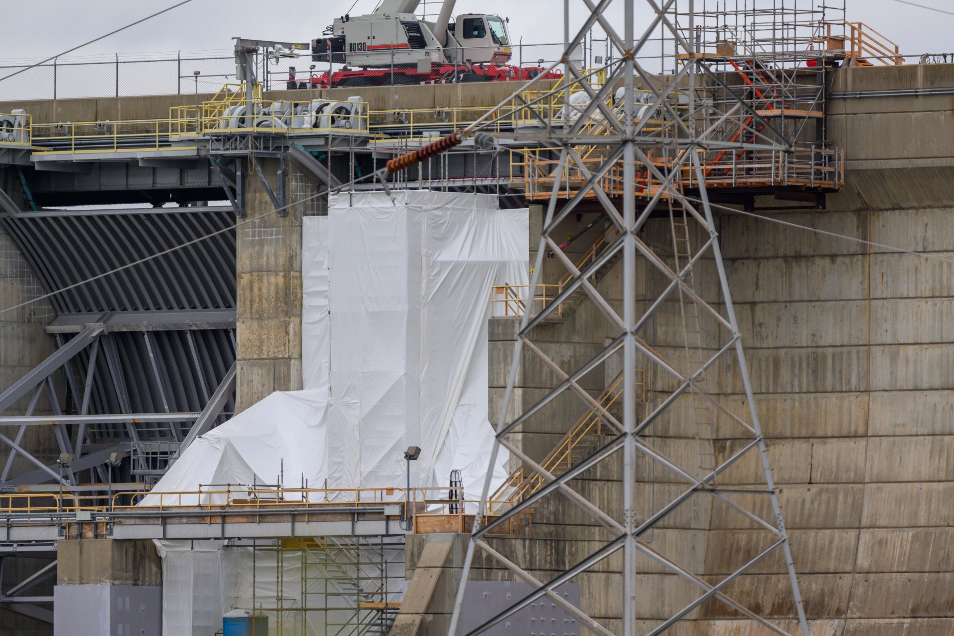 After months of engineering and preparation, the “Proof of Concept” phase of the Folsom Dam Raise Project has begun. Working from a 50-foot-tall scaffold system situated on suspended platform 230 feet above the bottom of the dam, our team must prove the gate retrofit can be completed on time and with the highest quality. Only then can we begin the retrofit of the remaining gates.